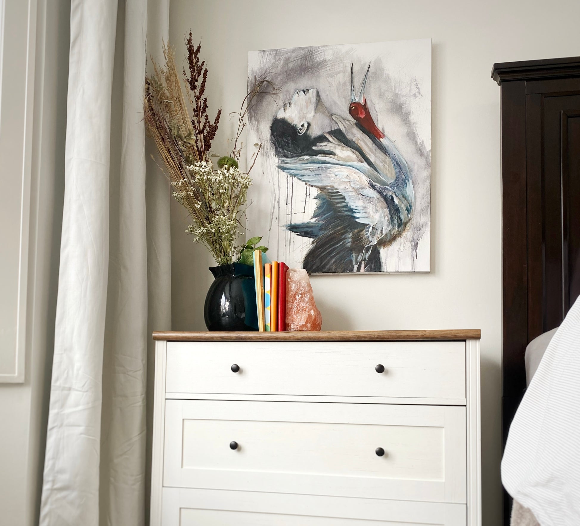 This original crane painting with figure is part of a contemporary body of work exploring movement, human connection, and the natural world.